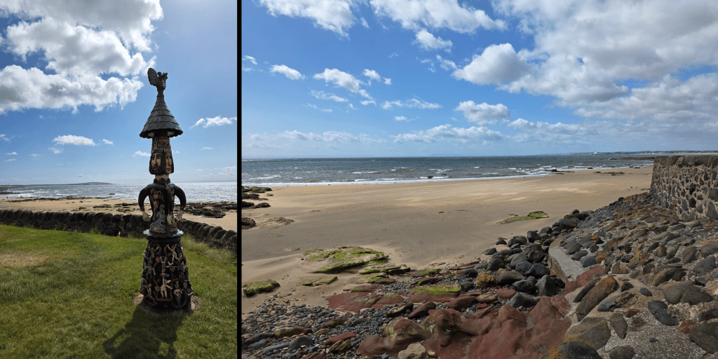 Also similar to Kirkcaldy, this promenade provides a view of the whole bay, with coast stretching out for miles ahead up to the point where you would turn to go to Elie, and Largo Law – Largo hill – towering over the distant towns. It was a touch hazy, but became clearer as the day went on and the clouds were chased away by sunshine.
