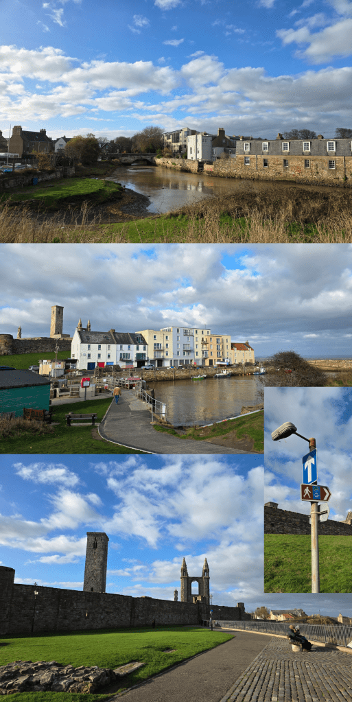 St Andrews Castle is of course directly ahead, its outline something I imagine I could draw with my eyes closed. I cannot pass without a picture, so on this occasion I included the Coastal Path sign – in one of them.