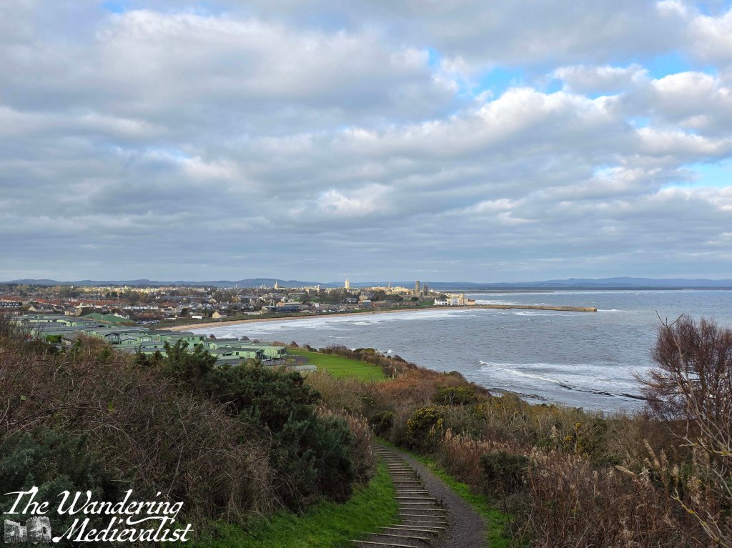 The view is just incredible, as gradually you move closer and closer to East Sands. Then in no time at all you are descending once more, along the edge of the caravan estate on a relatively steep set of stairs. There is a viewpoint off to the right, and then the path continues towards the beach.