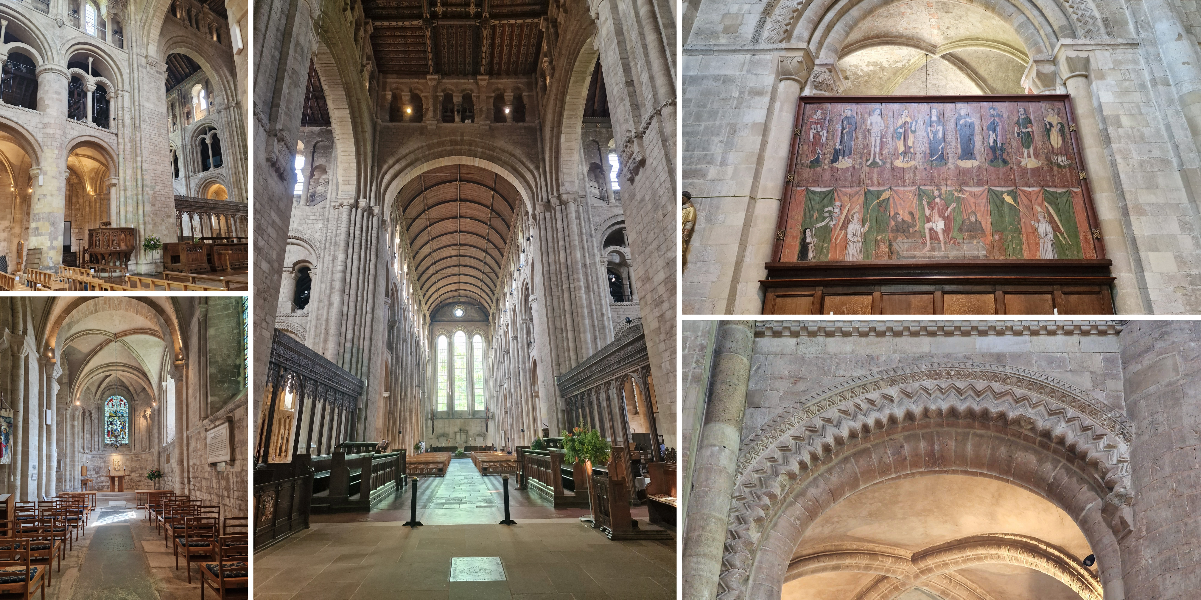 On our last visit, we were finally able to get inside of the church, which has several fine examples of medieval art as well as Norman carving that echoes that seen in Durham Cathedral.