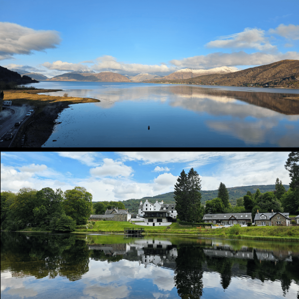 These views were captured from Ballachulish bridge, and from across the River Tay looking back at the Kenmore Hotel. Only moments later, the river in the below shot was caught by the wind, and the reflection erased. For the top shot, the water was still for close to thirty minutes, early in the morning before the breeze picked up or the tide shifted.