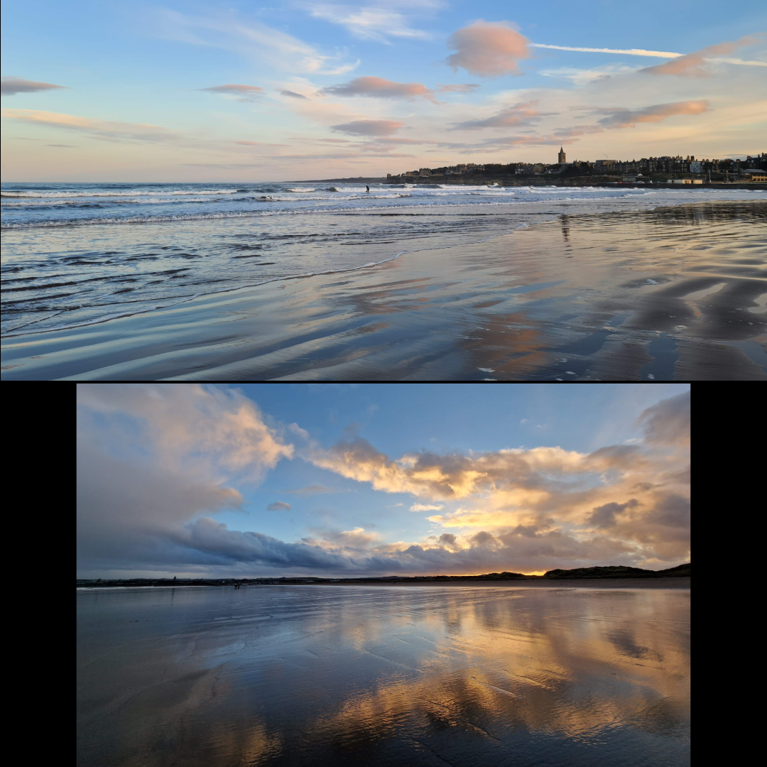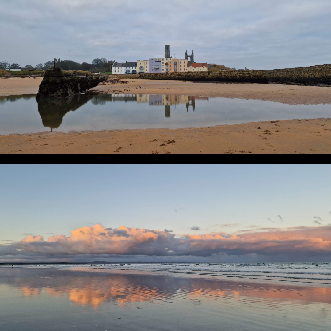 I have said it before, that St Andrews is one of the most photogenic places I know, and the groupings below show just how stunningly beautiful it can be – and how well the clouds and distinctive skyline reflect on the surrounding beaches. West Sands in particular stretching out for miles and – at low tide – what feels like miles wide provides some of the most amazing reflections I have ever captured.