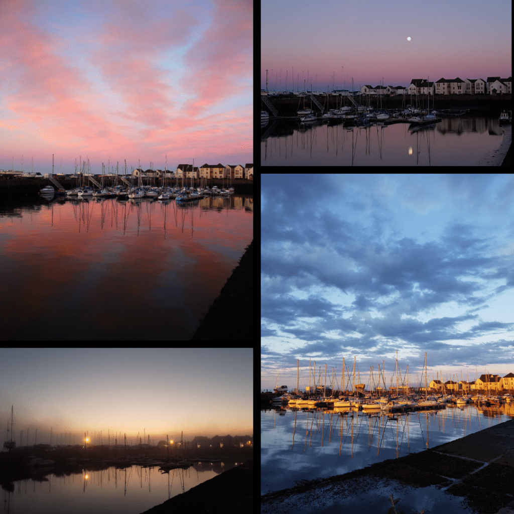 For the relatively short time we lived in Tayport, I was able to really take advantage of the seaside location to capture reflections at all times of day. The harbour was my favourite spot, as you can see – sunrise, sunset and even with a full moon.