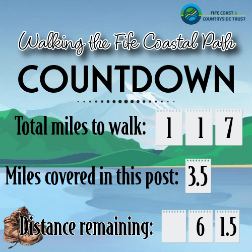 After my plans for a walk last weekend were rained out (torrential rain, not pleasant Scottish mist), I was determined to get back on track this weekend. It has however been a long and stressful week at work, so I chose a slightly shorter route again rather than pushing myself for the five miles I was planning. After spending the last few weeks arranging my autumn travel, I am becoming concerned that the goal to get this walk done by end of January might be a touch ambitious, but I can only try and get as much done as possible. And it doesn’t mean I’m going to not finish at all, just that it might take a bit longer. Eagle-eyed readers checking my Fife Coastal Path challenge page may note that I have extended the challenge by 6 months. A new goal, and one I intend to keep!