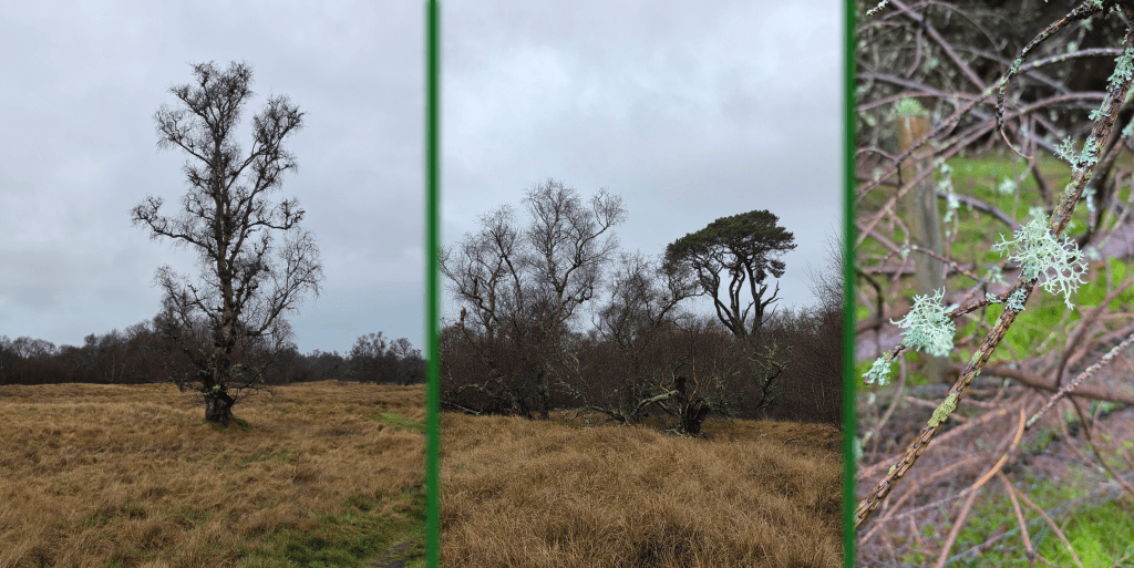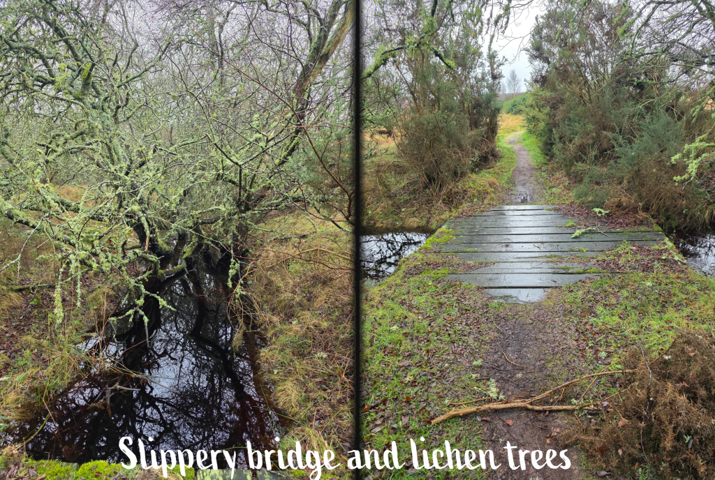 Shortly after this left turn, the quality of the new bridges was made clear when I approached an older wooden bridge, this one slippery and grimy from the weather and moss. Nevertheless, the small burn it crossed was lined with trees absolutely dripping in beautiful lichen, coating the branches in a light seafoam green. Up close, the lichen reminds me of types of coral.