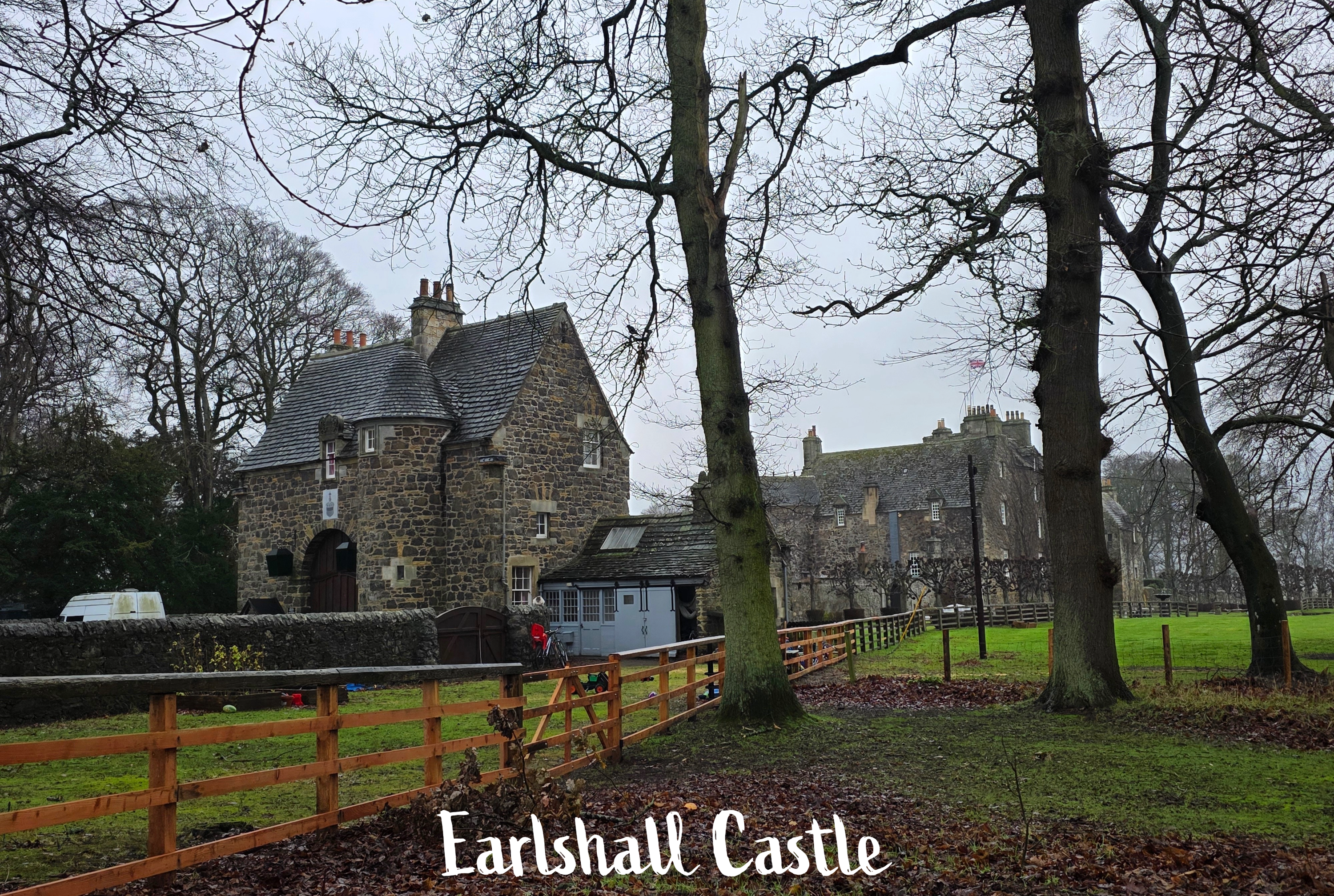 Finally, after a bit more drama than I expected, I reached the castle grounds and started my official walk recording. I cannot recall now if I mentioned much about the castle itself last time I did this walk; it is a relatively ‘new’ castle as Scottish castles go, built in 1546 by a Sir William Bruce, a survivor of the devastating Battle of Flodden. This battle is infamous for the death of King James IV of Scotland, who is the last monarch in Great Britain to die in battle (surpassing Richard III by about 30 years). More a mansion than a castle, Earlshall was built in the ‘courtyard’ style, and is still in good shape. It is also, apparently, for sale; if only I had £8 million to spare.