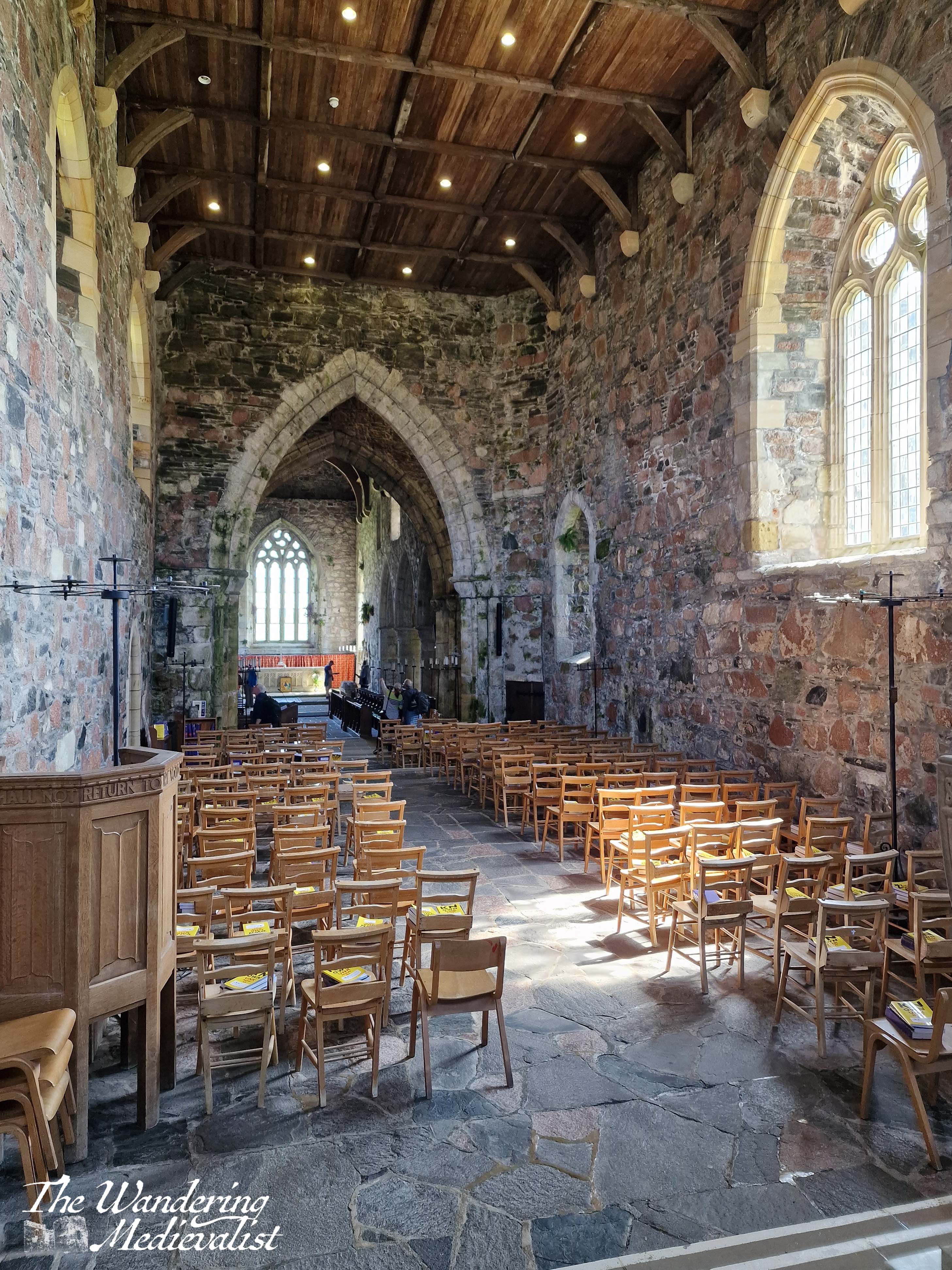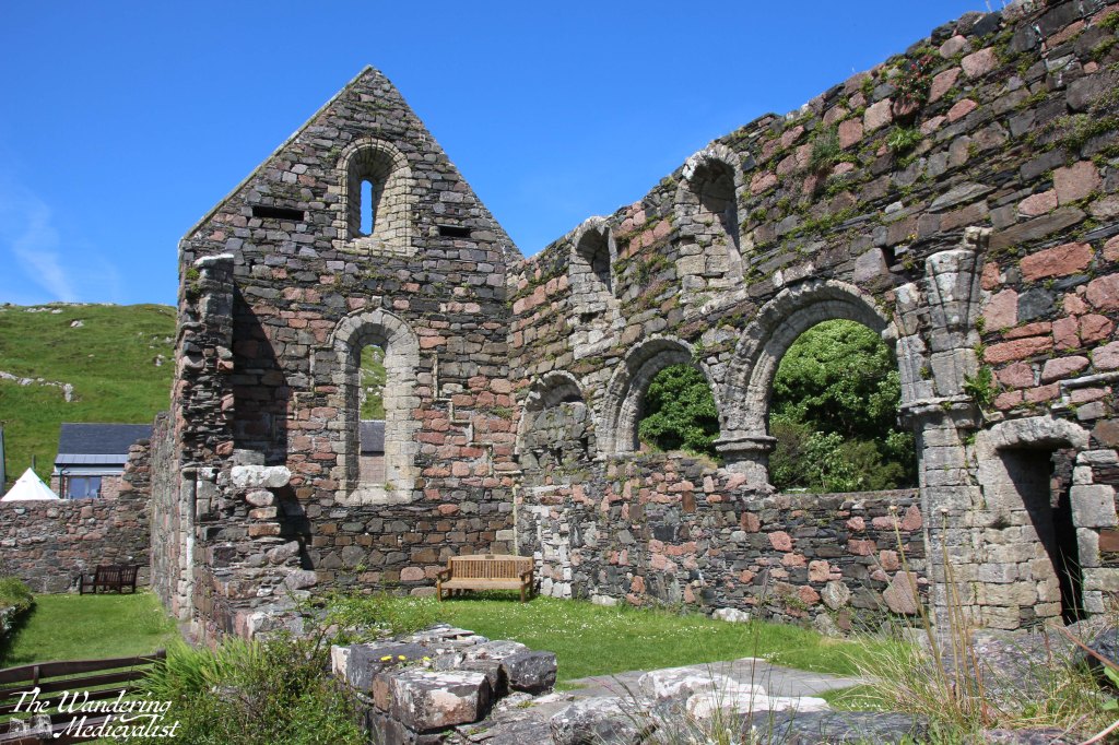 Fortified by sandwiches and a scone, we began our walk to the abbey, following in the footsteps of hundreds of years’ worth of pilgrims and tourists. At first, the path proceeds along the main road, leading in only a few minutes out of the modern dwellings and past the ruins of the Augustine nunnery. The nunnery was founded around 1200 by Ranald, King of the Isles, and while mostly ruined it is still one of the best preserved medieval nunneries in Britain.
