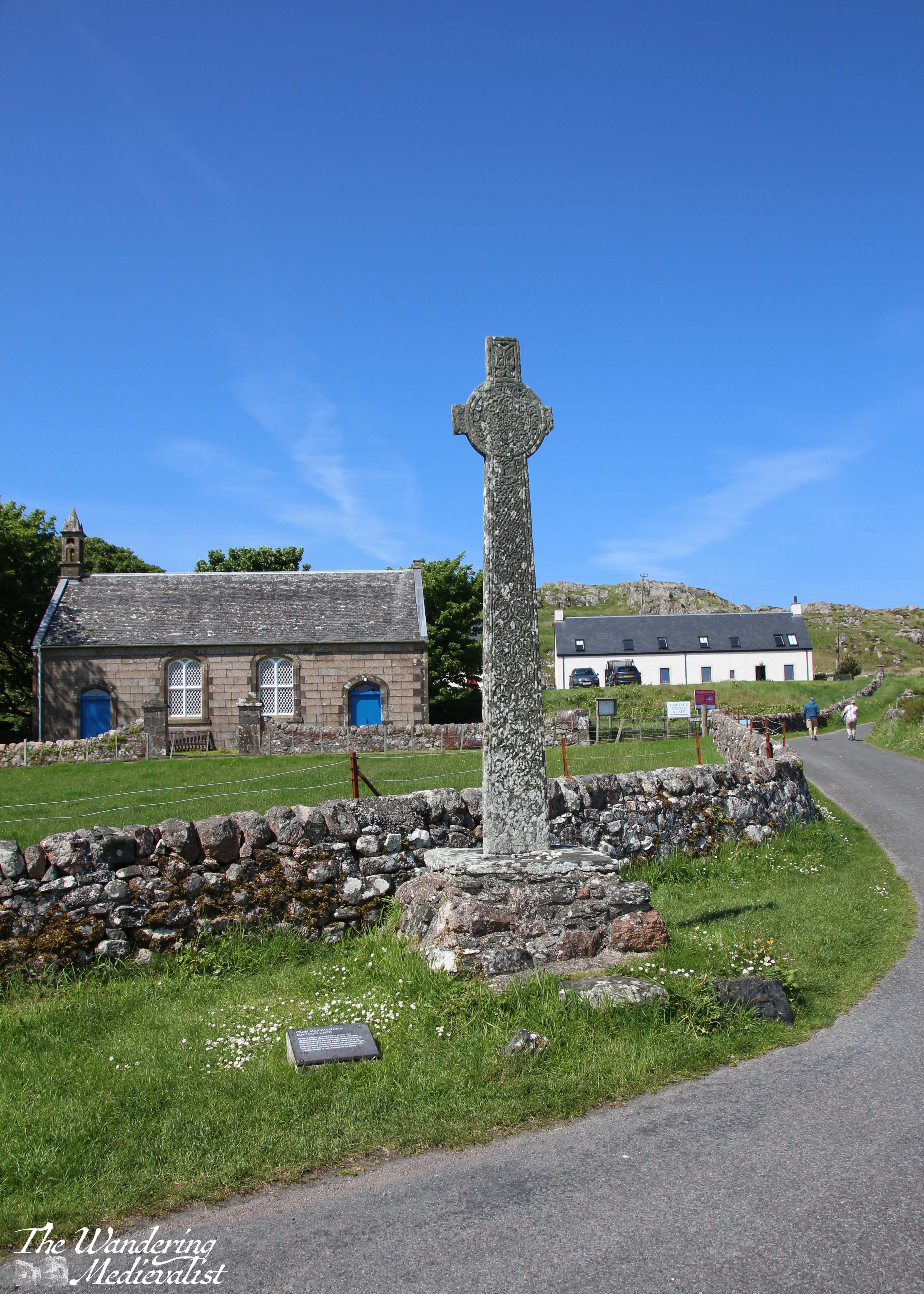 A short walk beyond the nunnery walls is the next step on the pilgrim way – MacLean’s cross. Erected around 1500, it marks the point where the track from the pier met the Sràid nam Marbh, the ‘road of the dead’, leading to the abbey. The cross was a focal point for pilgrims to stop and pray, and was carved on Iona from a single slab of stone. There is a more detailed view of the cross in the video at the end of this post.